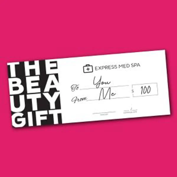 Give the gift of beauty and wellness with the $100 Gift Card from Express Med Spas! Whether you’re treating yourself to a rejuvenating experience or gifting it to a loved one, this versatile gift card can be used for a variety of med spa services, including facials, injectables, body contouring, and skincare treatments.