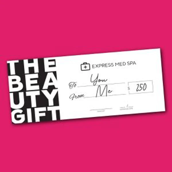 Give the gift of beauty and relaxation with the $250 Gift Card from Express Med Spas! Whether you’re indulging in a self-care treatment or gifting it to a loved one, this flexible gift card allows access to a wide range of med spa treatments, including facials, injectables, body contouring, and skin rejuvenation.